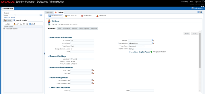 - Close IDM page and run “User and Roles Synchronization Process” job from financial setup screen.