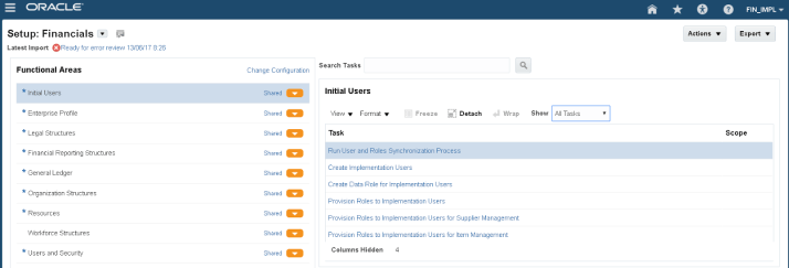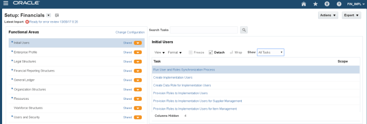 - Under Setup Financial Screen → Initial Users → Show as “All Tasks”