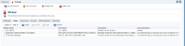 - Assign “IT Security Manager” and “Application Implementation Consultant” by navigating to Roles tab.