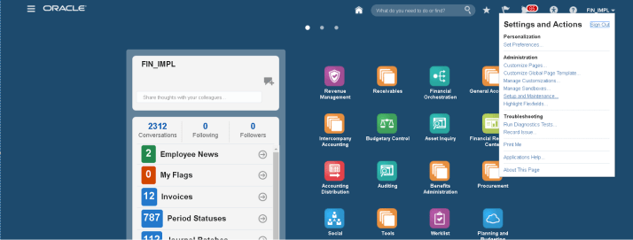 - Select Settings and Actions → Administration → Setup and Maintenance