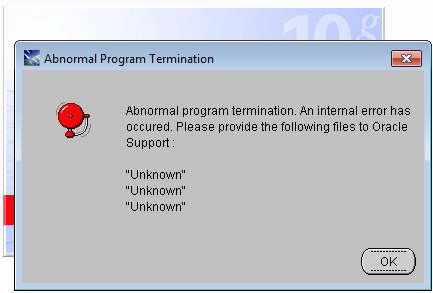 Error: Abnormal program termination. An internal error has occurred. Oracle developer 10g installation on windows 7 – 64 bit. by Yogesh Pachpute Posted on July 5, 2017July 14, 2017 Microsoft Windows Configurations Error: Solution: Thanks Yogesh Share this: Click to share on X (Opens in new window) X Click to share on Facebook (Opens in new window) Facebook Like Loading... Related