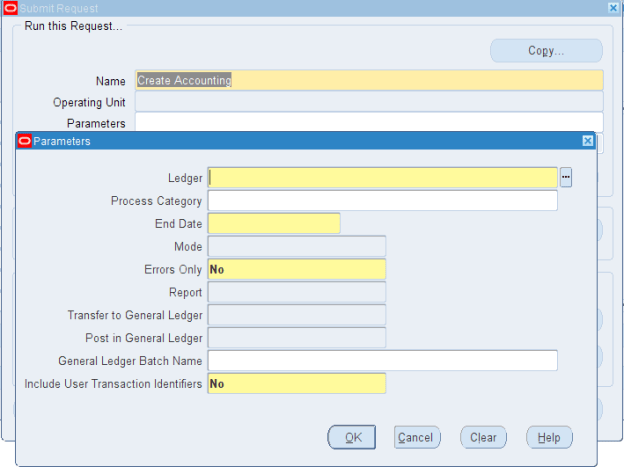 - Submit Create Accounting program from Payable responsibility with proper end date and Final and Post Mode parameter value as ‘Yes’.