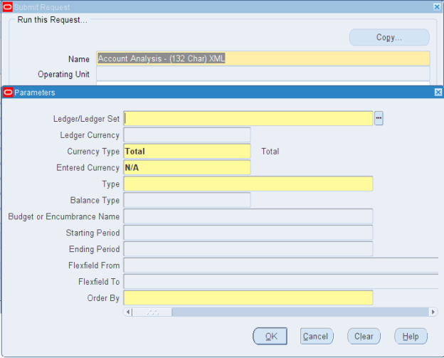 - If there is still any differences then submit the GL “Account Analysis – (132 Char) XML” report, which will help to find whether any other source journals are posted to these liability accounts. This report is also called as GL activity report.