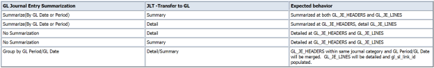 Note: The “No Summarzation” option causes the level of detail in the GL to be the same as in the Subledger i.e. the same number of headers and lines.