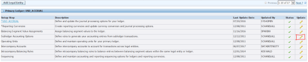 Click on Update Icon against the Application to be setup(Example: Payables)