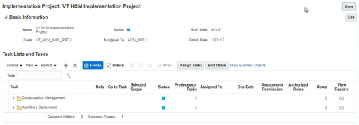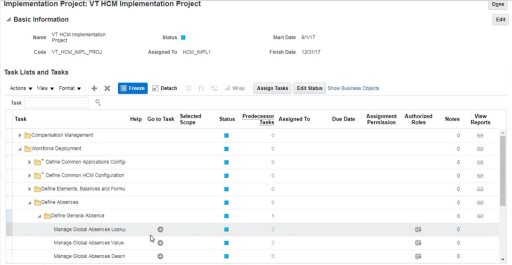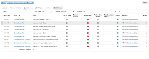 Please note this user cannot modify any implementation task. Here Permitted column red means user does not have access to perform this task. |