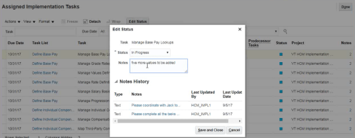 Logged in as user for which implementation task are being assigned by implementation manager.