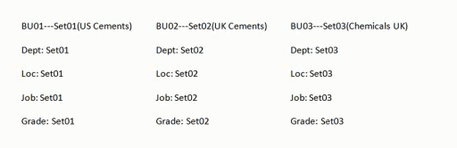 By default all the objects for this business unit will have set id as “SET01” which we assign while creating business unit. |