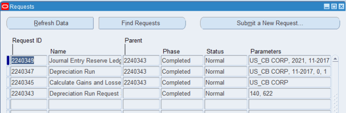 - FA_DEPRN_DETAIL – A ‘D’ row for each distribution line is inserted FA_DEPRN_PERIODS – Updating the current period’s row with a PERIOD_CLOSE_DATE closes the current period, and a new row is inserted for the next period