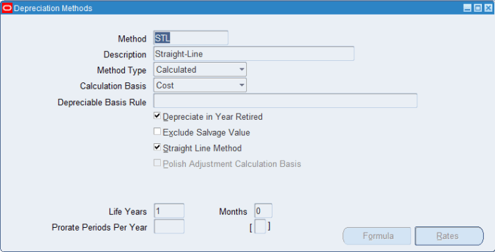 b.1) A life based method or calculated method will spread the depreciation out over the fixed life of the asset. It uses the asset’s cost or NBV, salvage value, date placed in service, prorate convention, depreciation method and life to calculate depreciation.