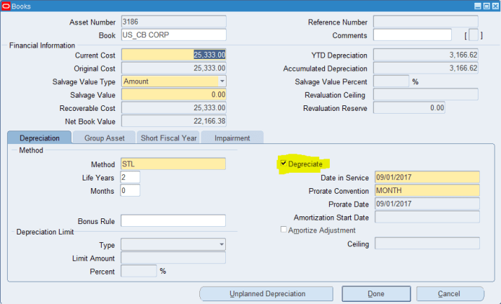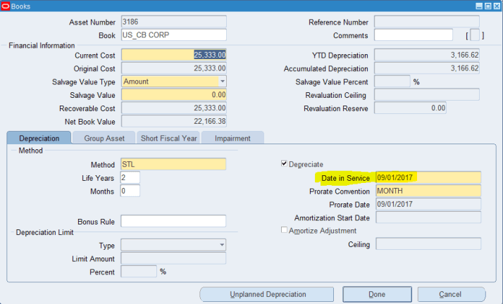 - For the first period of the asset’s life, it will use the depreciation calendar, prorate calendar, depreciation start date and current year depreciation.