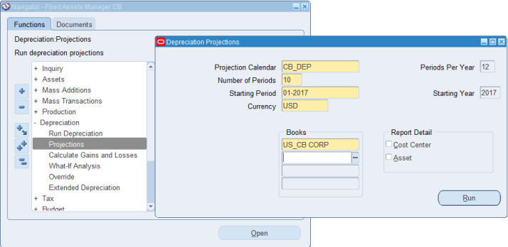 Oracle Assets provides you with a depreciation projection program and report that will estimate actual depreciation expense. You can project depreciation for any number of periods across any of your depreciation books. Keep in mind, whatever period you are projecting for, must be defined in your calendar.