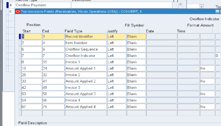 Navigation: Setup > Receipts > Lockboxes > Transmission Formats Following are valid record types: