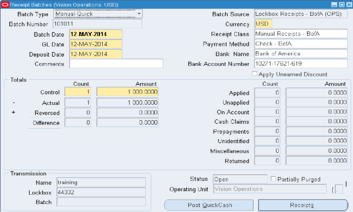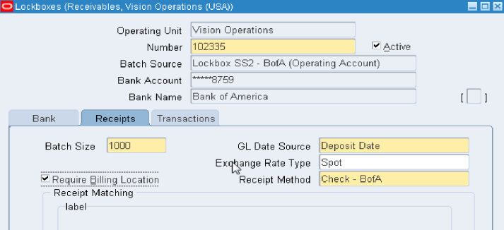 Applying Receipts Via Lockbox – Match Receipts By Options